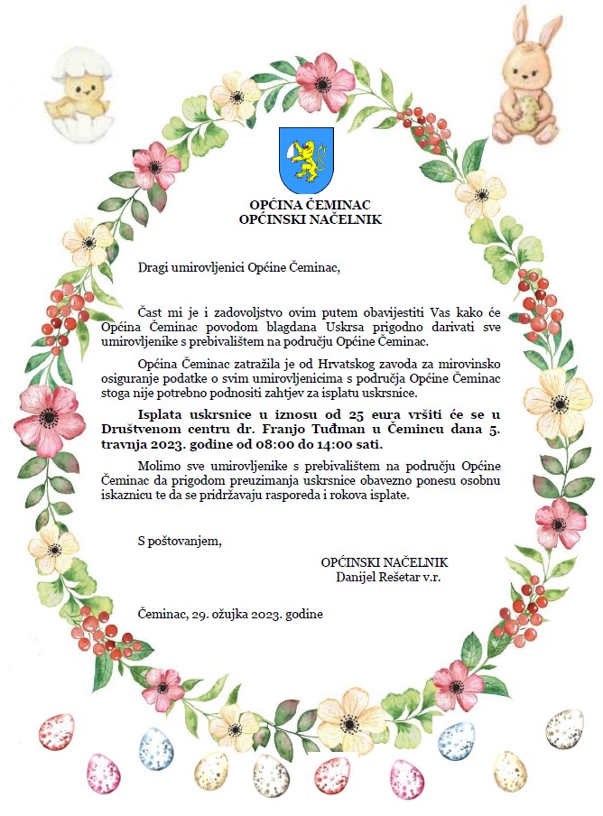 Podjela uskrsnica umirovljenicima s područja Općine Čeminac